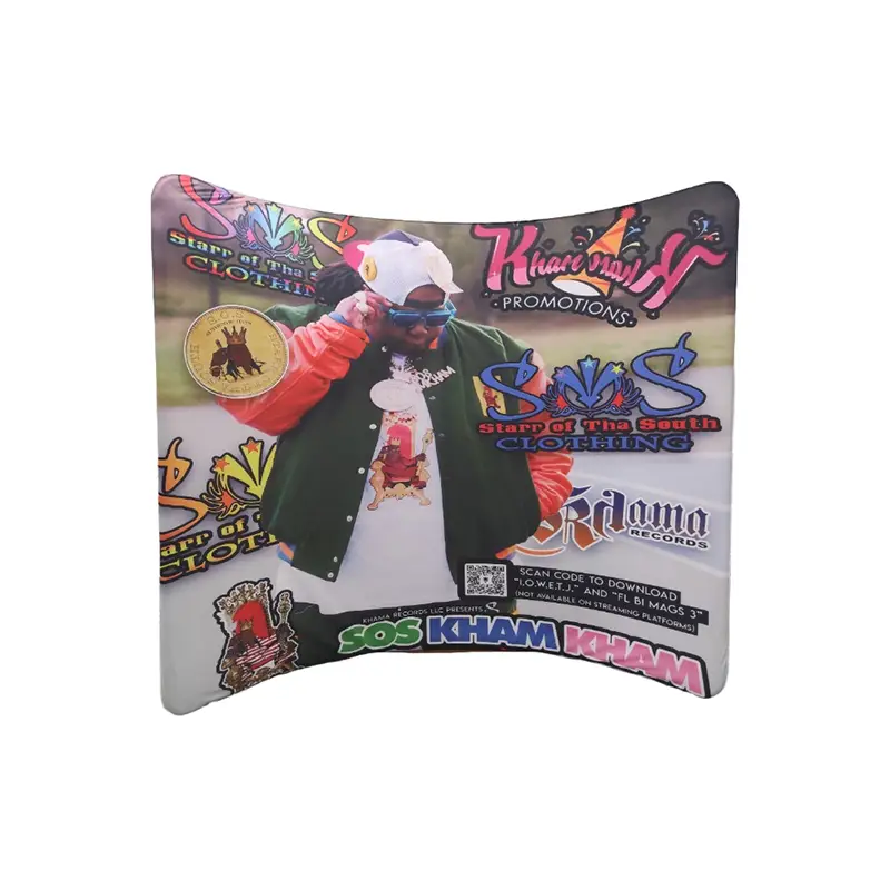 Bingkai latar mburi kurva digawe saka pigura paduan aluminium sing kuwat nanging entheng lan kain rajutan cetak pewarna-sublimasi kanthi definisi dhuwur, stand lengkung busur iki nawakake daya tahan lan visual sing paling apik. Kain kasebut nduweni warna sing padhang lan tahan gores sing ndadekake desain rumit urip kanthi cetha banget. Struktur sing mlengkung nggawe tampilan sing mulus, tanpa kerut, lan rakitan tanpa alat ngidini sampeyan nyiyapake latar mburi profesional mung sawetara menit.