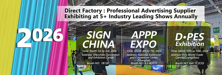 Shenzhen, China - 23 Januari 2026 - Earth Display, panyedhiya siji-mandeg sing dipercaya kanggo solusi tampilan iklan ruangan, wis siyap kanggo gabung karo telung tandha lan iklan sing paling dihormati ing donya iki Maret 2026. Tim kasebut bakal nggawa pilihan peralatan pariwara paling anyar menyang Sign China (Shenzhen), APPP EXPO (Shanghai), lan pameran regional D·PESilored sing beda-beda, lan pameran regional D·PESilored sing beda-beda. kelompok industri karo lineups produk diangkah.